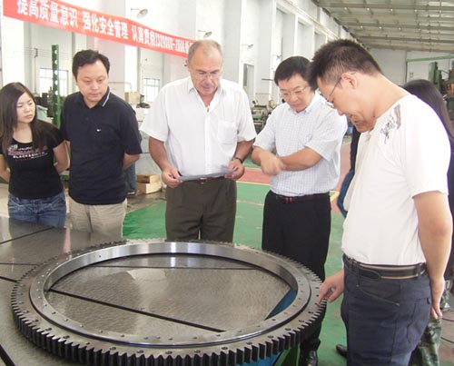 2007年9月14日法國(guó)客戶來(lái)公司考察,洽談轉(zhuǎn)盤軸承項(xiàng)目。