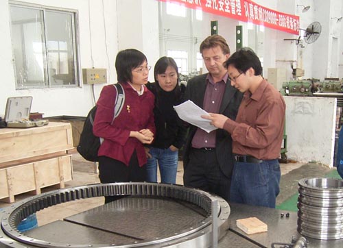 2007年10月9日澳大利亞客戶來公司考察,洽談轉(zhuǎn)盤軸承項目。